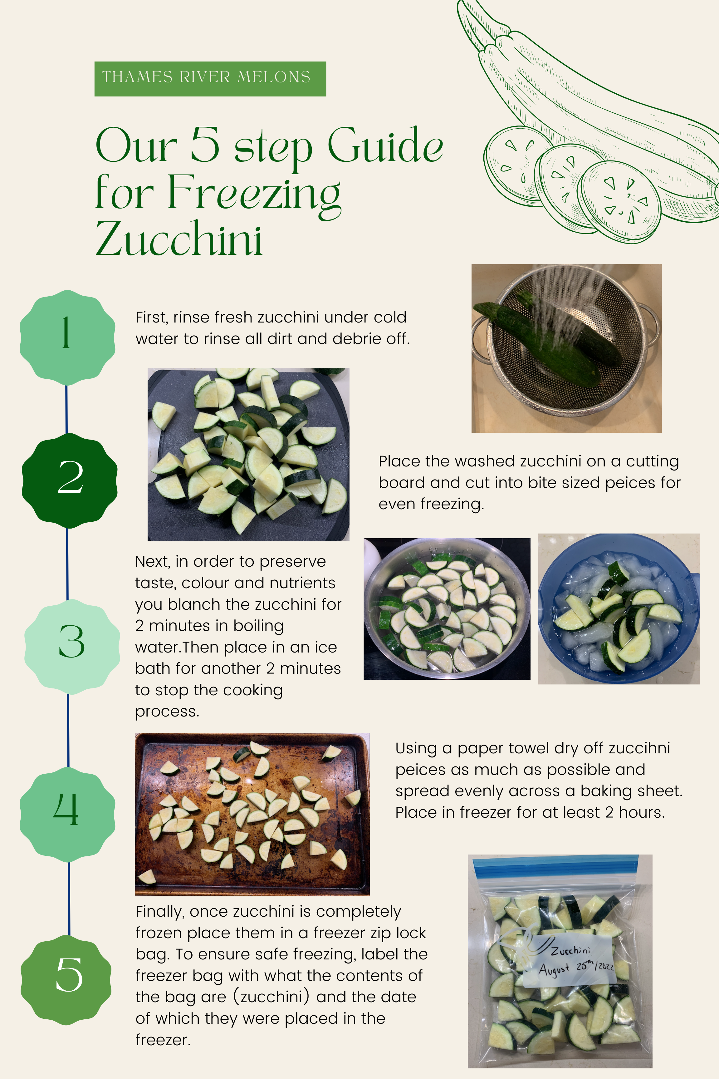 Zucchini Freezing Guide August 25, 2022 Alex Chesney Graphic created and photographed by Dietetic Intern Rae Wilcox