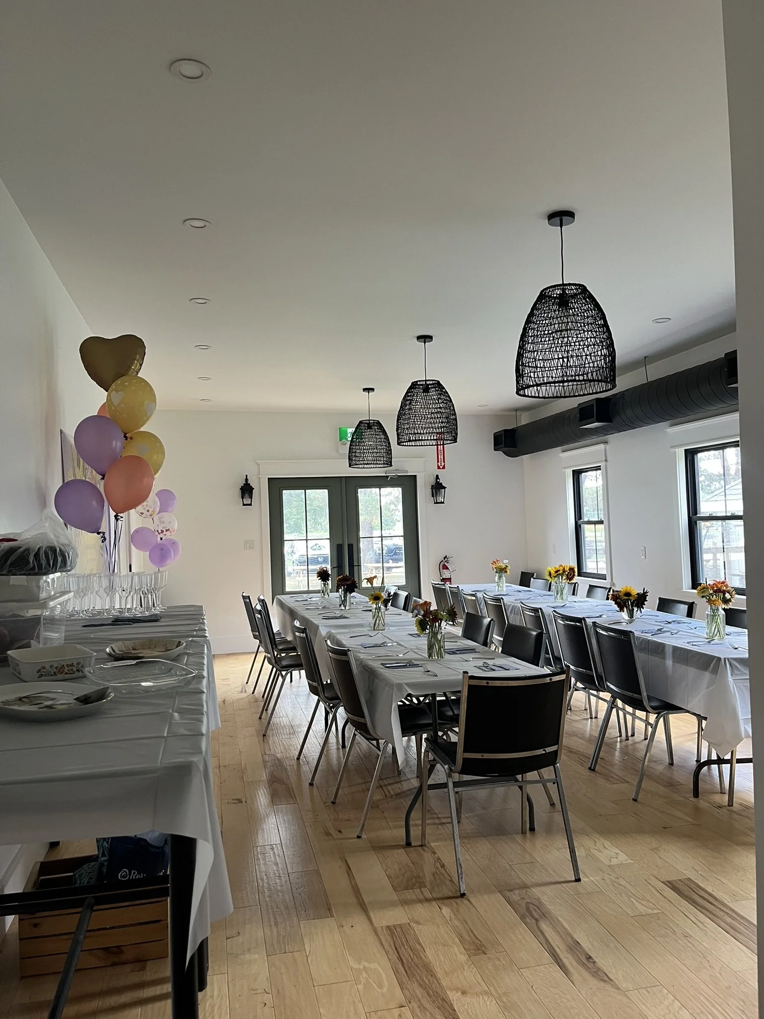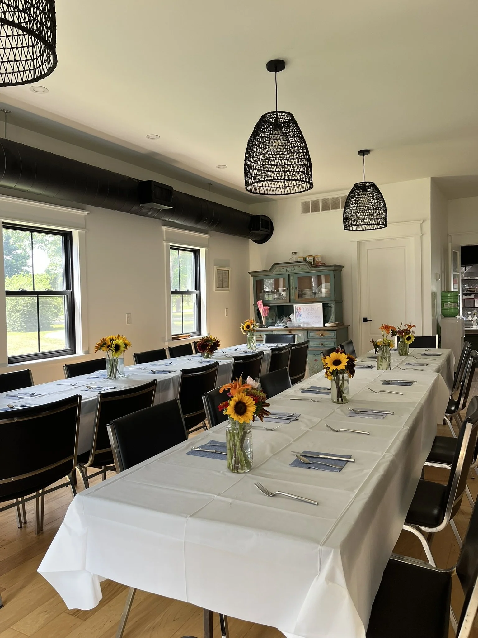Our newly installed Farm Kitchen Dining Room, along with access to the outdoor areas on our farm, makes the perfect setting for your baby or wedding shower, anniversary celebration, low-key bachelorette, or birthday party.