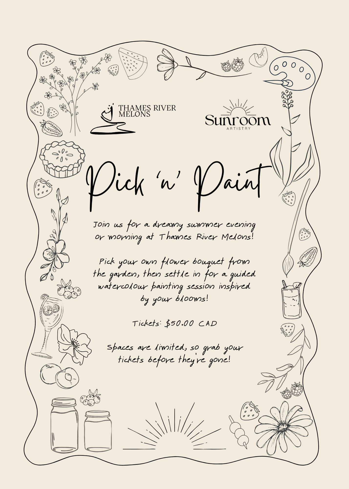 Wander the flower garden to pick your own bouquet, then settle in for a guided watercolour painting session inspired by your hand-picked blooms.🌻